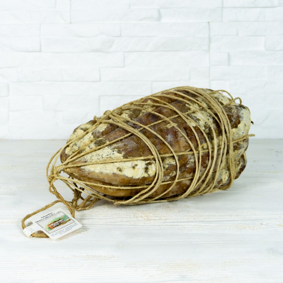 Lo Spallotto stagionato è un insaccato delicato e armonioso, ottenuto da carni selezionate della spalla, lavorate con cura e lasciate maturare lentamente fino a raggiungere una consistenza morbida e un gusto elegante, simile al Fiocchetto.